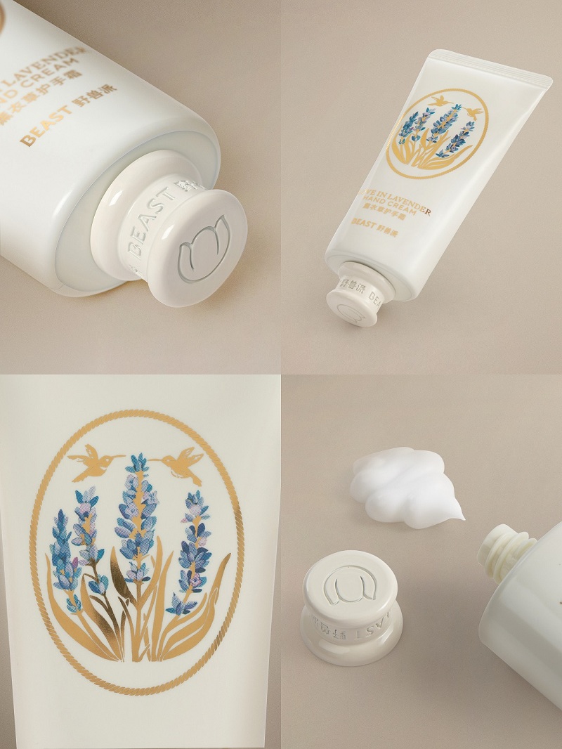野兽派植萃护手霜的瓶盖上印着野兽派经典的铃兰造型,花语是幸福归来——Return of Happiness。像是紧紧守护心爱之物,只等你开启。每款香味也都有不同花神守护,护手霜管身上的插画,就是它的身份证明。管身带来更为舒适的回弹力度和醇厚质感,精细考虑到每一次使用,挤出料体的舒适力度体验,圆角设计,不易刮花衣服和包包。