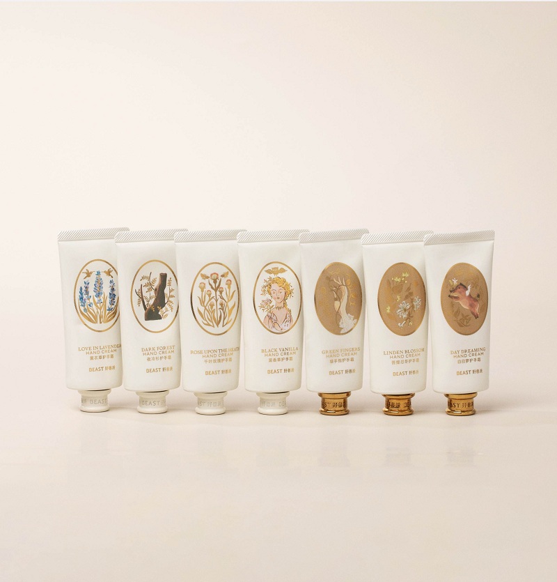 野兽派植萃护手霜的瓶盖上印着野兽派经典的铃兰造型,花语是幸福归来——Return of Happiness。像是紧紧守护心爱之物,只等你开启。每款香味也都有不同花神守护,护手霜管身上的插画,就是它的身份证明。管身带来更为舒适的回弹力度和醇厚质感,精细考虑到每一次使用,挤出料体的舒适力度体验,圆角设计,不易刮花衣服和包包。