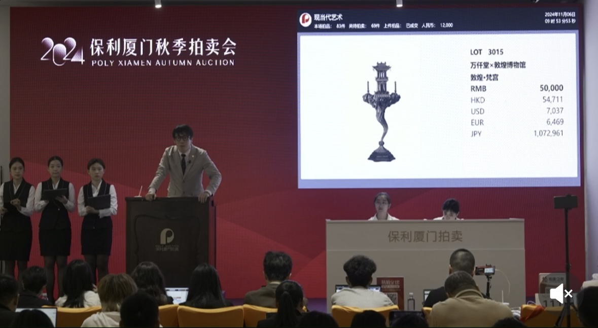 作为全球中国艺术品拍卖行业成交额最高的北京保利拍卖行的子公司——厦门保利,于11月5日至6日成功举办了其备受瞩目的秋季拍卖会。在这场艺术盛宴中,一件尤为引人注目的拍品——万仟堂与敦煌博物馆官方联名推出的全球限量铜雕艺术品《敦煌·梵宫「No.001」》,最终被一位收藏家成功拍得。