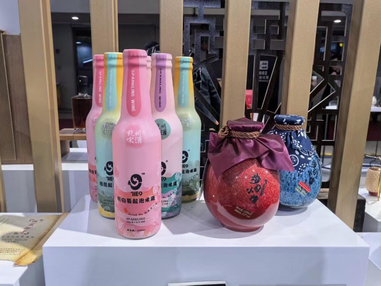 在这个展区亮相的黄酒代表之一就是杭州宋酒,精美的外观造型和香飘四溢的酒曲,引来参观者不断。