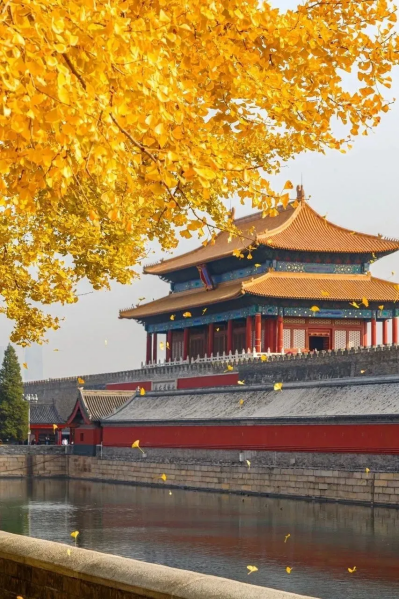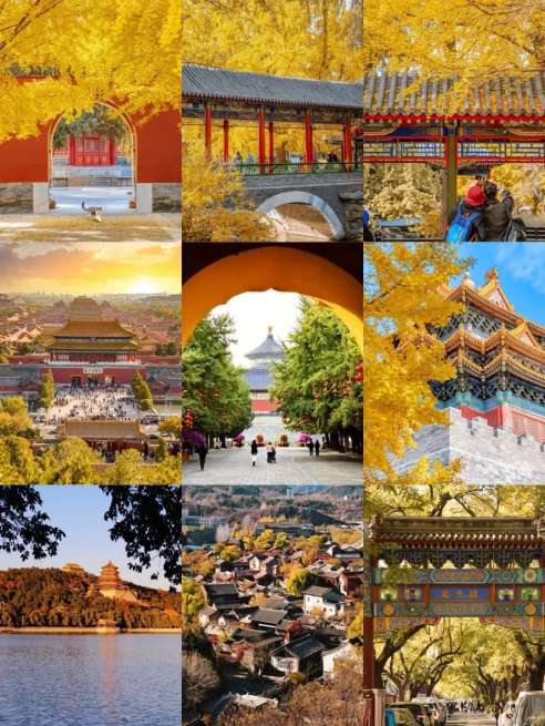 01故宫:故宫的秋天,是北京最迷人的景致之一。当秋风送爽,银杏叶由绿转黄,故宫便被装点成一幅动人的画卷。红墙映着金色的银杏叶,仿佛穿越了千年的时光,每一处都是绝佳的拍照背景。