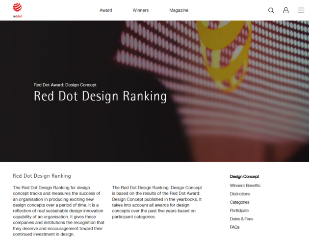 红点奖能从设计本身出发,不带任何偏见地进行评价。在此基础上,红点奖排行榜考虑了各参赛类别在过去五年中的所有设计奖项,创建了一个公平专业的设计竞赛平台,为各机构持续带来更多具有创新性的作品注入全新动力。