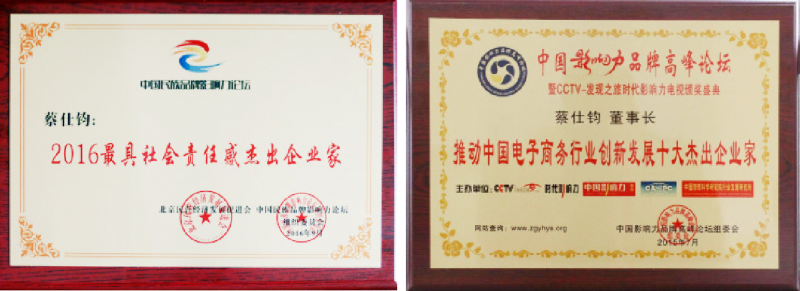 凭借着在电商领域的成就,蔡仕钧担任国家贸促会(中国国际商会)理事,也曾担任过中国爱心事业联合会副会长、中国非公企业联合会副会长、北京民营经济发展促进会副会长、浙江省民营经济研究会副会长等职务,并荣获了 CCTV 行业领军品牌,CCTV 推动中国电子商务创新发展十大企业家、2016 中国民族品牌影响力论坛最具社会责任感杰出企业家等荣誉。