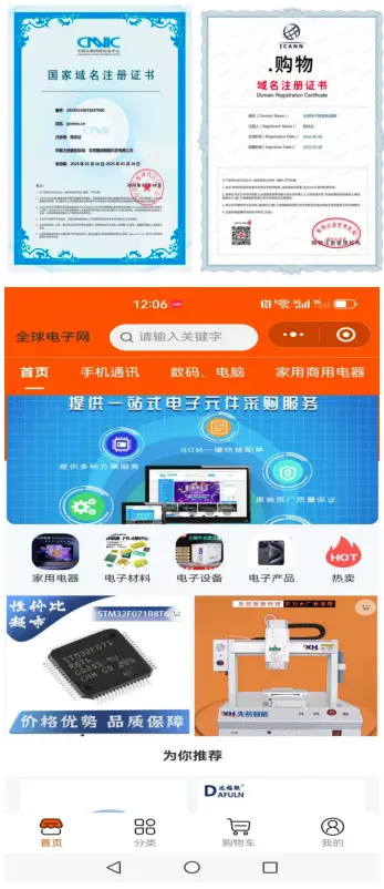 通过链接生产、销售、用户和服务,打造了一个B2B2C2S的电子专业类目平台。同时依托微信小程序、APP和PC端网站等多种形态上线,实现多网合一,数据互通互联。再结合多元创新技术与流行体验,运用AI技术,通过短视频、直播以及电子商圈与生活生态圈的OTO场景精准匹配需求,不断探索新技术,为新电商创新应用场景提供更丰富的消费体验。全球电子网平台以我国为起点,响应国家“一带一路”倡议,致力于引领更多国内电子产业链企业走向全球,展示我国更专业、更优质的先进电子技术产业新面貌。