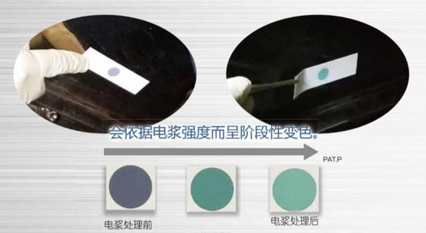 不管是否进行电浆处理,任何程度的处理效果都能以颜色变化进行确认。