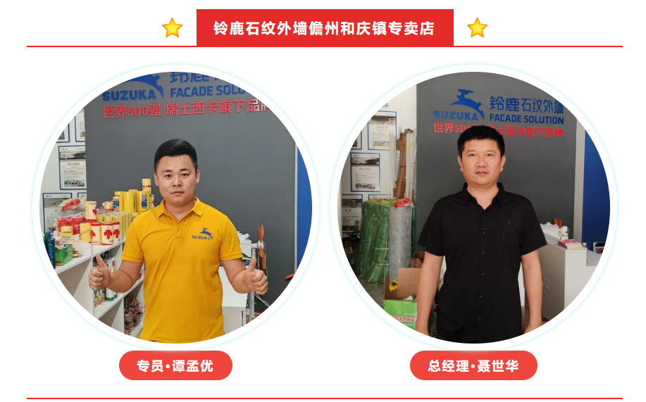 2021年,我们代理了铃鹿品牌,成立了铃鹿石纹外墙许昌陈曹乡专卖店;2024年,我们新建了500平方展厅,销售团队也日益壮大。