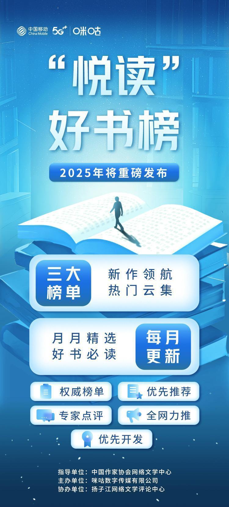 为进一步推动文学与影视的深度融合,咪咕数媒积极布局。近来,在中作协指导下,咪咕与扬子江网络文学评论中心共同推出“悦读好书榜”活动。该活动聚焦网文不同发展阶段内容,通过权威指导,为作者、读者提供创作建议和内容引领,赋予作品更多价值。
