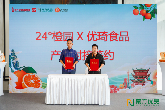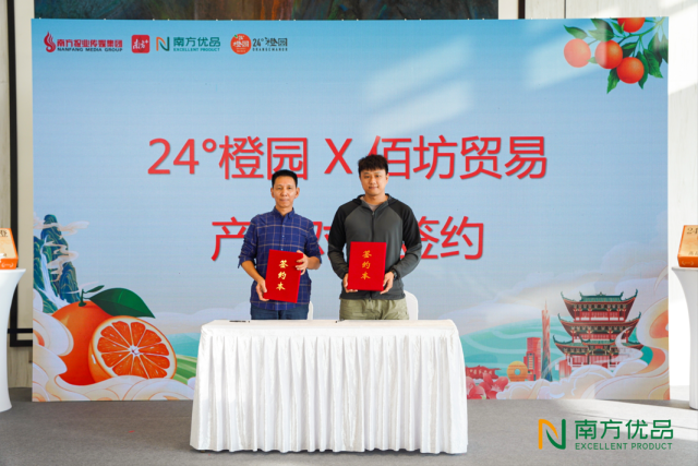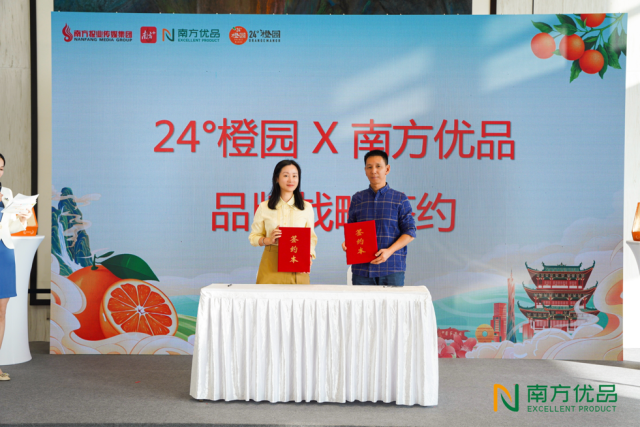 为进一步推动24°橙园品牌走出寻乌、走进湾区、走向全国,江西天南智飞科技有限公司和广东南方优品运营有限公司签署战略合作协议,未来将整合南方优品党媒背景的品牌链接力资源和供应链资源,更好地推广24°橙园产品。