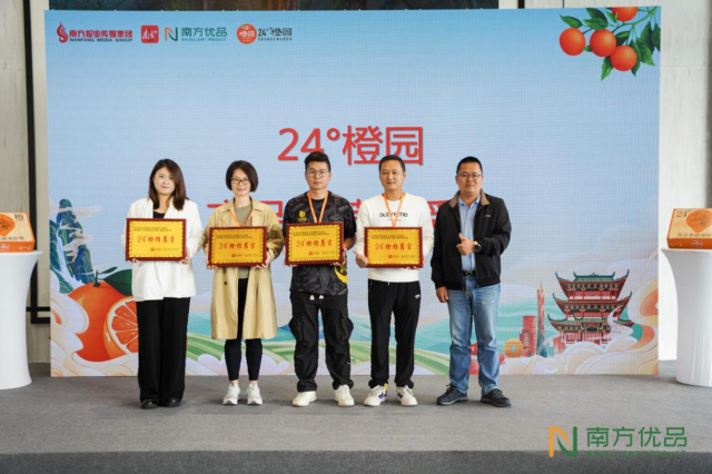 为积极培育壮大24°橙园品牌发展,提升产品的综合效益和竞争力,24°橙园向橙子星球、本末(广州)信息服务有限公司、广州灏壹互联科技有限公司、广东省江西寻乌商会、广州视源股份有限公司、广州厚今优选、广州标发鲜丰农业有限公司、深圳沐光农产品供应链有限公司、广州市优琦食品贸易有限公司、广州佰坊贸易有限公司、琪臻(广州)农产品有限责任公司、广州驻家鲜供应链有限公司授予“24°橙园产品推荐官”牌匾。