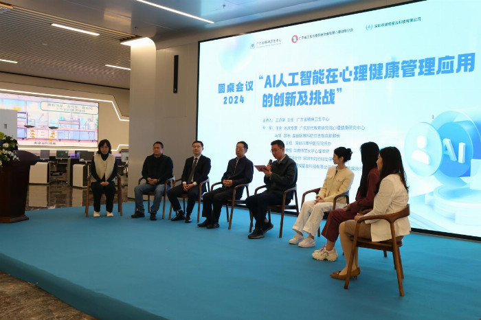 本次活动还邀请了广东现代教育研究院心理健康研究中心首席专家王鉴、深圳市盐田区教育科学研究院智慧融合部部长马瑞等专家以“AI人工智能在心理健康管理应用的创新及挑战”为题展开圆桌会议,深入探讨AI在心理健康领域的应用前景,为大家带来学术前沿的洞察,也为产学研合作的进一步深入提供了可能性。