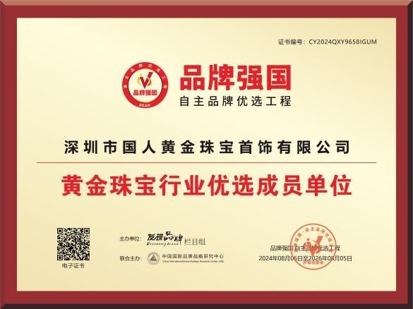 此外,“国人黄金”还积极响应“品牌强国”战略,凭借其卓越的品质和深厚的文化底蕴,成功入选“品牌强国优选工程”成员单位。这一荣誉,不仅是国家与行业对“国人黄金”品牌的高度认可,更是对其未来发展的有力鞭策。未来,“国人黄金”品牌将继续努力,致力于打造专业性、国家级、国际化的自主品牌推广平台,充分发挥品牌的引领作用,树立新时代中国自主品牌的光辉形象。