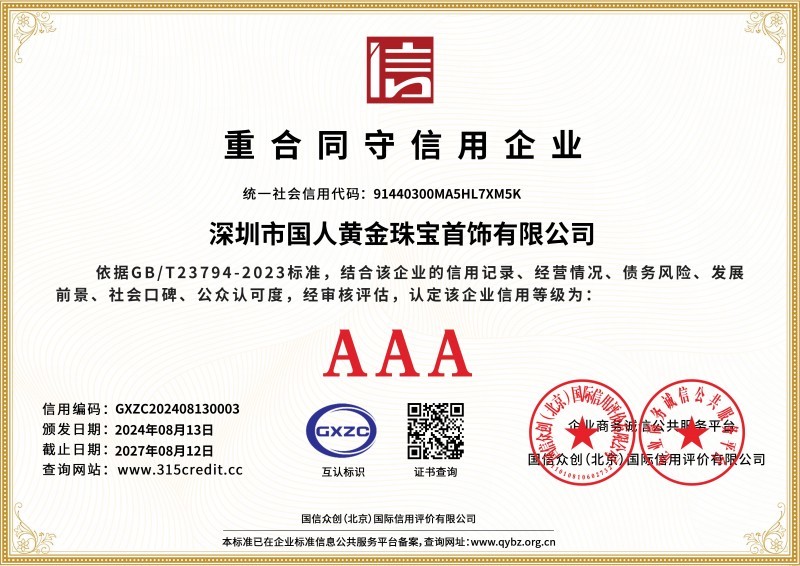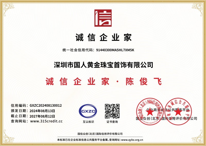 对于未来的规划,陈俊飞满怀信心,踌躇满志。目前,“国人黄金”已经成功地签约了代言人,并在央视等重要媒体平台进行了广泛投放,还获得了一系列荣誉证书,为品牌发展提供了强有力的背书和支持。今后,他将继续加大力度拓展店面布局,进一步扩大市场份额,同时不断推出引领潮流的新品,满足市场的多元化需求,为行业发展注入源源不断的新活力。