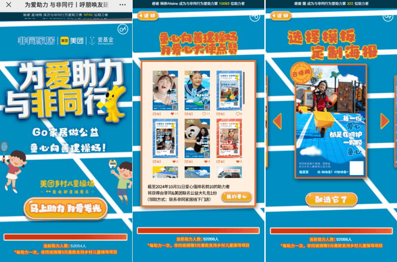为了让更多人能关注到乡村儿童教育环境,非同家居还在线上推出了爱心互动线上页面。短短一个月时间,这个互动程序吸引了50000多位爱心人士的参与。这个数字背后,是每一个普通人对于公益事业的热情与支持,也是非同家居作为品牌引领社会正能量的有力实践。