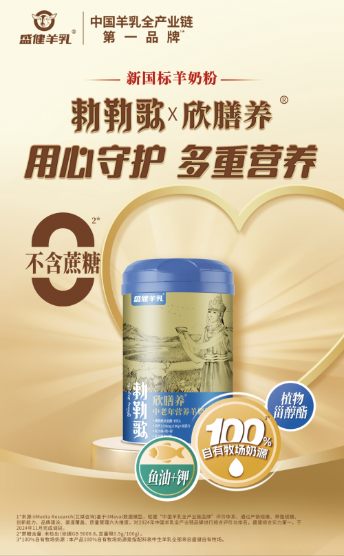 据了解,盛健羊乳在2025年客户大会上推出了“勅勒歌”系列五款新品羊奶粉,包括实现配方全新升级,专为中老年设计的“勅勒歌·固膳养”与“勅勒歌·欣膳养”。其中“勅勒歌·固膳养·中老年营养羊奶粉”由早期的“勅勒歌·心膳养”升级而来,主打天然纯净、0添加,助力夜晚好眠。而“勅勒歌·欣膳养·中老年营养羊奶粉”则在保留早期“勅勒歌·固膳养”系列产品原有“多重营养 用心守护”承诺的基础上,进行了全面升级,能够更加全面、精准地满足中老年人群的日常营养需求。