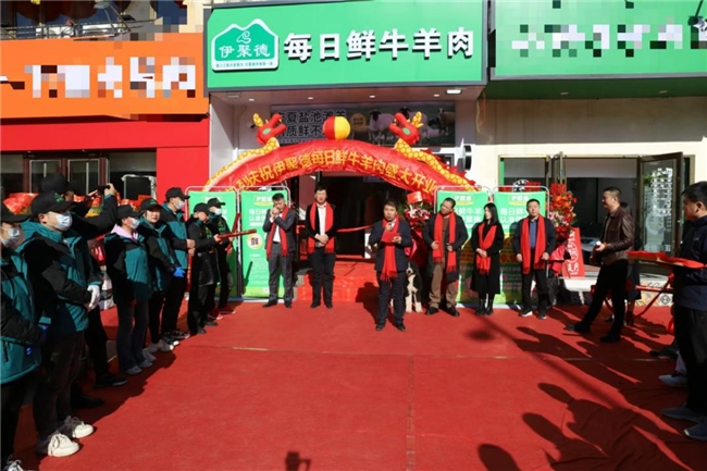 良辰吉时到11点18分在大家笑脸注视下庆典仪式开始。首先由宁夏伊聚德农工贸有限公司董事长任杰为伊聚德每日鲜牛羊肉店致开业贺辞,重点介绍公司成立于 2015 年,位于宁夏银川市贺兰县,主营盐池滩羊肉,六盘山黄牛肉,是一家从养殖、屠宰,到生产加工,以及销售为一体的综合性民营企业,在养殖端,公司采用自有牧场+合作农户养殖的模式,确保育种正宗,质量可靠,出栏稳定;在销售端,公司线上利用京东、天猫等主流电商渠道为销售载体,线下专供餐饮连锁门店,如北京南门四季、北京新京熹、天津津门羊大爷等知名餐饮。伊聚德每日鲜生鲜门店旨在为消费者提供优质、正宗、新鲜的宁夏牛羊肉,以及其它特产品类,产品冷链保鲜从宁夏空运只需4小时可直达此燕郊社区店,让河北燕郊消费者都能及时吃到源头工厂直供的冷鲜牛羊肉。
