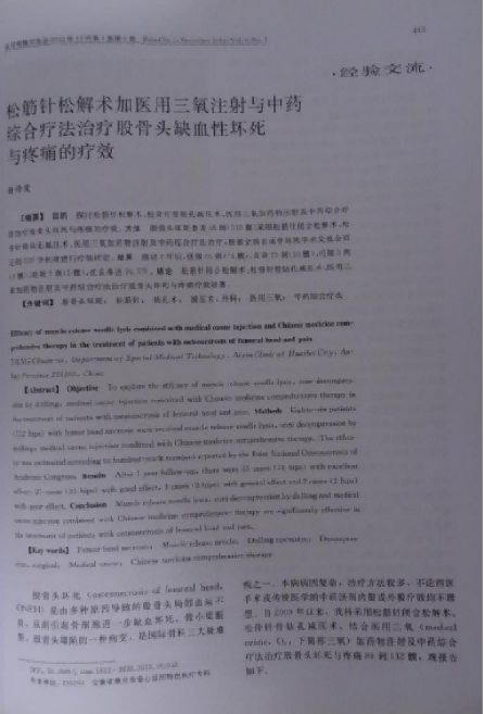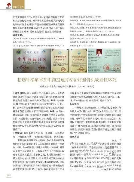 股骨头坏死(osteonecrosis of femoral head,ONFH),是由于多种原因导致的股骨头局部血运不良,从而引起骨细胞进一步缺血坏死、骨小梁断裂、股骨头塌陷的一种病变,是国际骨科三大疑难病之一。本病病因复杂,治疗方法较多,但不论西医手术或传统医学的中药汤剂内服或外敷,疗效均不理想。