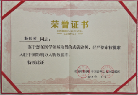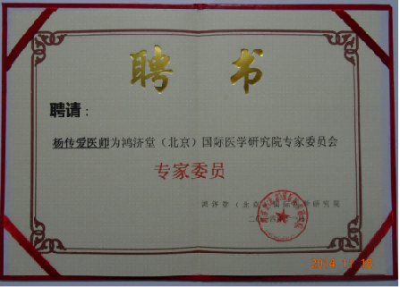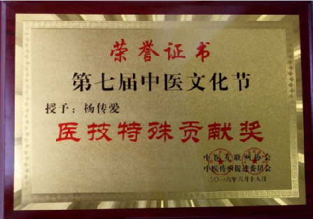 现如今,身为北京四知堂国际医学研究院院长的杨传爱,在为广大患者进行医治的同时,兼任了北京世针联埋线专家委员会委员、鸿济堂(北京)国际医学研究院专家委员,继续深入研究新的课题,攻克新的疑难杂症,同时,还兼任了靳氏截针大舞台专职讲师、中华美江绿色疗法研究会第一届理事会理事、海峡两岸医药卫生交流协会中医药专业委员会客座教授等职务,把相关知识、技术传授给更多同行,正如他所言,授之以鱼不如授之以渔,希望新医疗方法能帮助更多患者走出病痛的折磨。