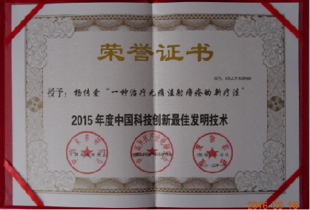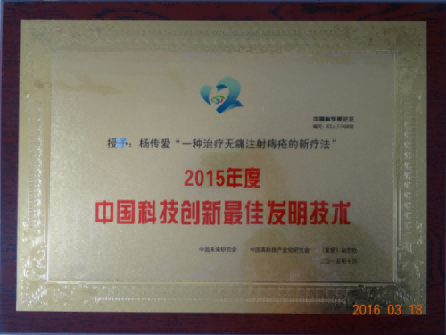 “杨氏痔根断无痛注射新疗法”是中华特技名医、国家级疑难病研究专家、淮北市爱心特色医疗绝技专科的杨传爱医师推陈出新,博采众长,加上三十多年的临床实践,并在师传注射疗法的基础上不断地加以改进而独创的一种根治痔疮(直肠息肉、肛周脓肿、肛乳头肥大、尖锐湿疣等)的最新疗法。所用药物-痔根断复合注射液为独家研制发明,获国家专利(专利号201410476245.1),2015年十月在人民大会堂召开的第十二届中国科学家论坛大会上被评为2015年度中国科技创新最佳发明技术。该疗法操作简便无明显毒副作用,不会引起任何并发症和后遗症,而且用量小(每个痔核仅0.5~2ml),大多一次即可治愈,永不复发。“杨氏痔疮无痛注射新疗法”是目前国内外较安全、较先进、较彻底,也是花钱较少、痛苦较小、疗效较好的创新疗法,该疗法在肛肠领域是历史性的突破,是广大痔友明智的首选。该技术操作简单、安全,药物价廉易购,值得临床大力推广。(另外,杨老师还研制成功了杨氏特效痔疮栓,杨氏痔疮治疗带等相关系列产品,对轻度痔疮、直肠炎有很好的疗效,避免了注射手术之苦)