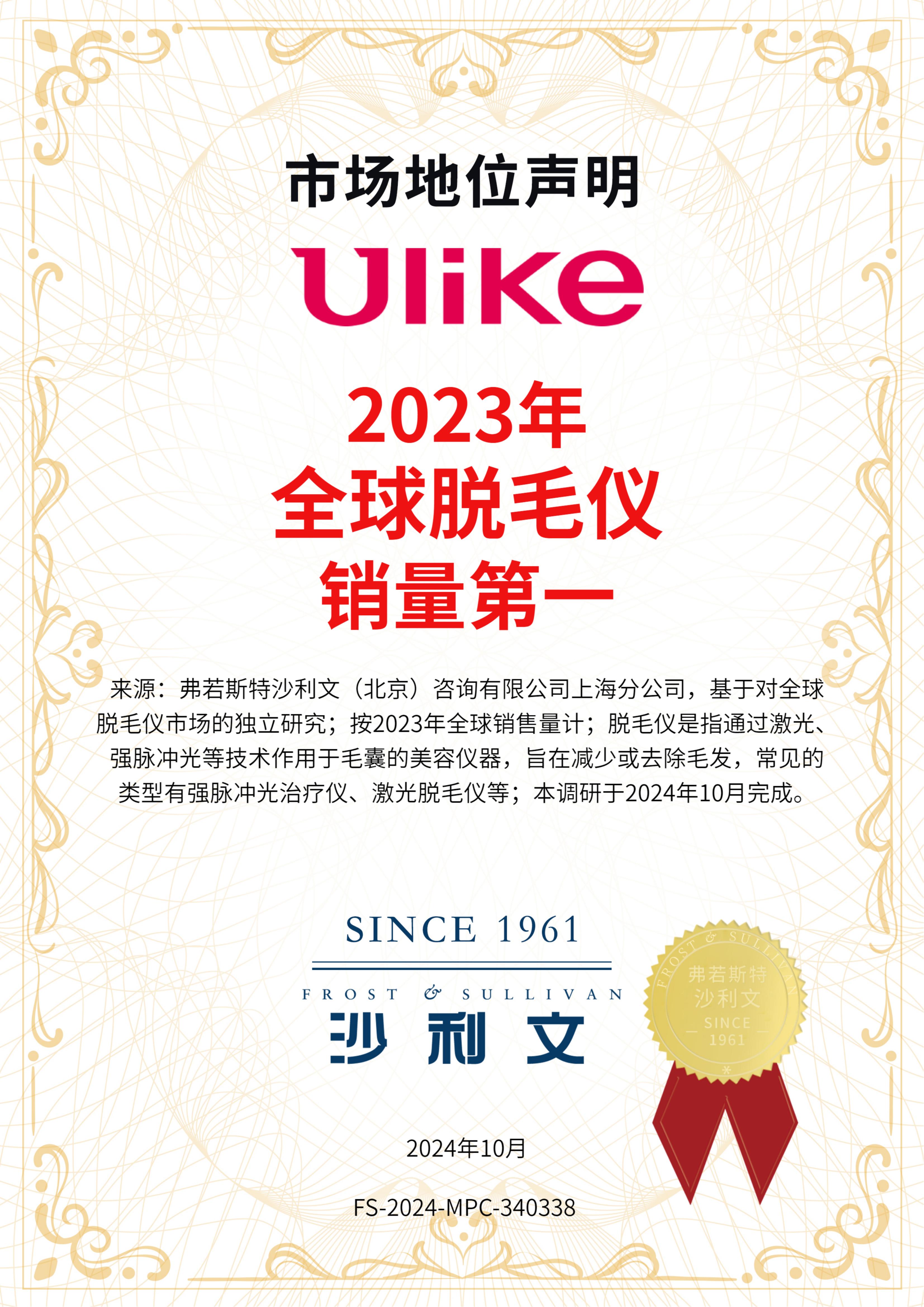 Ulike作为全球光学脱毛美肤领导品牌,已实现连续9年销售第1,斩获多平台行业、类目销售第一,同时也被认证为全球销量第1的家用脱毛仪品牌,在全球市场上继续保持领先地位。