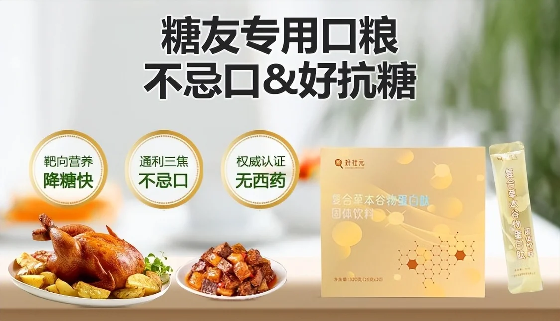 在壮元医药的丰富产品线中,“好壮元复合草本谷物蛋白肽”无疑是极为亮眼的一颗新星。该产品以糖尿病管理的关键靶点为科学依据,融合传统中医智慧,精选多种具有明确靶向调理效果的中草药、果蔬及谷物,包含山药、桑叶、芡实、百合、薏苡仁、山楂以及胡椒七大护糖成分,