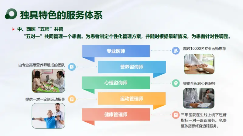 除了优质产品外,壮元医药还精心构建了“线上+线下”相结合的一对一营养师跟踪服务体系,专门创建了一个精准服务亚健康人群的私域平台,在平台上汇集了上万名专业医疗人员,结合AI健康管理系统与人工服务,为用户提供全天候的高品质陪伴式服务。参与糖尿病逆转服务的用户还能享受到由国内著名的中西医专家组成的“五师共管”团队提供的个性化控糖管理方案,并根据跟踪数据的反馈及时调整方案,确保长期稳定的健康管理效果。