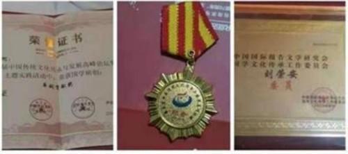 ÁõÈÙ°²ÔÚÖйúµÚÁù½ì´«Í³ÎÄ»¯´«³ÐÓë·¢Õ¹»áÉÏ»ñ¹úѧӦÓÃÍ»³ö¹±Ï×½±¡£ÓÉÔ½Î÷Ê¡¸±Ê¡³¤,ÖÐÑëÕþÐίԱ,ËïÏ£ÔÀ°ä·¢Ö¤Êé¡£(×ó4ΪÁõÈÙ°²)