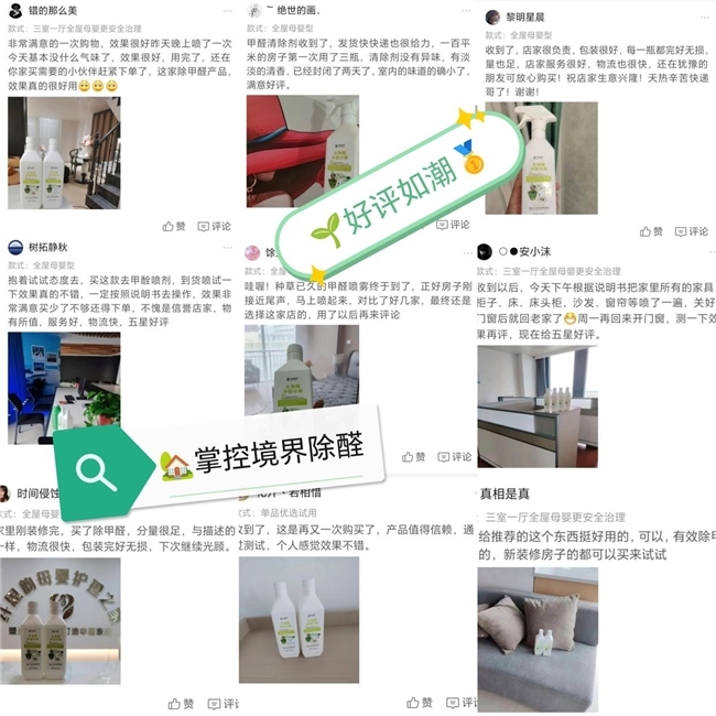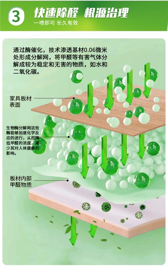 甲醛污染问题严重,家居环境的健康与安全尤其重要。掌控境界生物酶甲醛分解清除剂凭借温和配方和高效除醛能力,改善室内空气质量,守护着全民的家居环境,让消费者的每一口呼吸都是清新安全的。