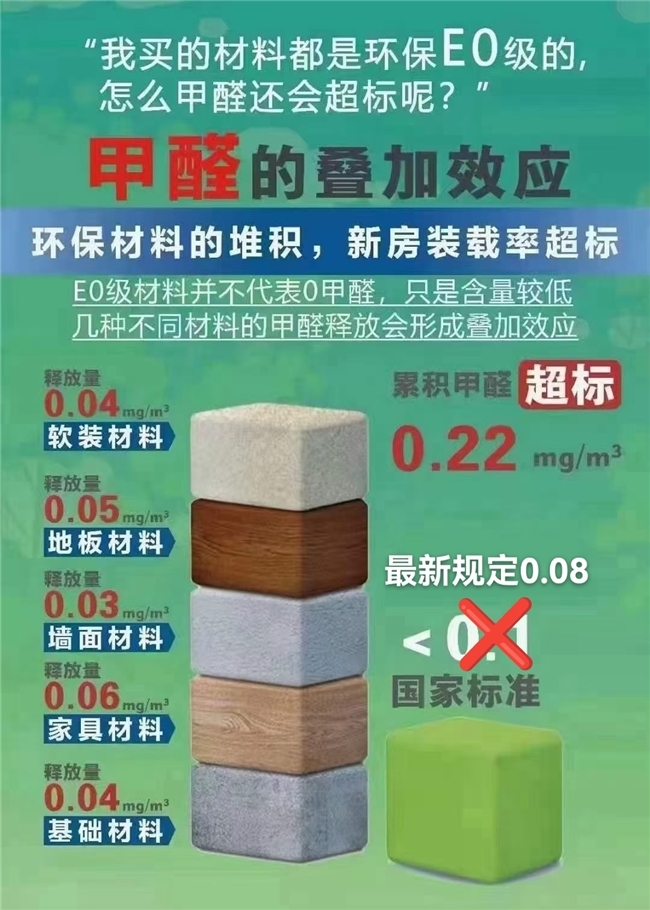 其实,甲醛是自然界中广泛存在的物质,人造板材中的粘合剂是主要来源之一,就连人们比较信任的实木木材,其实也有可能存在甲醛,更不用说油漆、塑料制品、化纤布料等日常家居生活中常见的产品了。栏目组诚邀江西豆芽绿环保科技有限公司相关负责人进行了访谈对话,主要对装修使用了环保材料为什么还是会甲醛超标?如何深层除甲醛,从根源解决甲醛超标的一系列问题的探讨。豆芽绿环保负责人回答:试想一张40公斤重的基础环保型人造板中,可能含有近3600毫克的甲醛。级别越高甲醛含量越低,如果用了几十张或上百张这样的板材,其甲醛含量可以计算出来。而空气中的环保标准是0.08毫克 /m3,许多装修公司和业主很不理解:装修好后再检测,结果空气中甲醛含量仍超过国家规定的环保标准。在有限的空间用了过多的人造板材,加之又没有进行装修污染的治理,叠加污染超标是当然的了。 正是意识到了甲醛对人体健康的危害,越来越多人开始重视高效安全的除甲醛的方式方法。