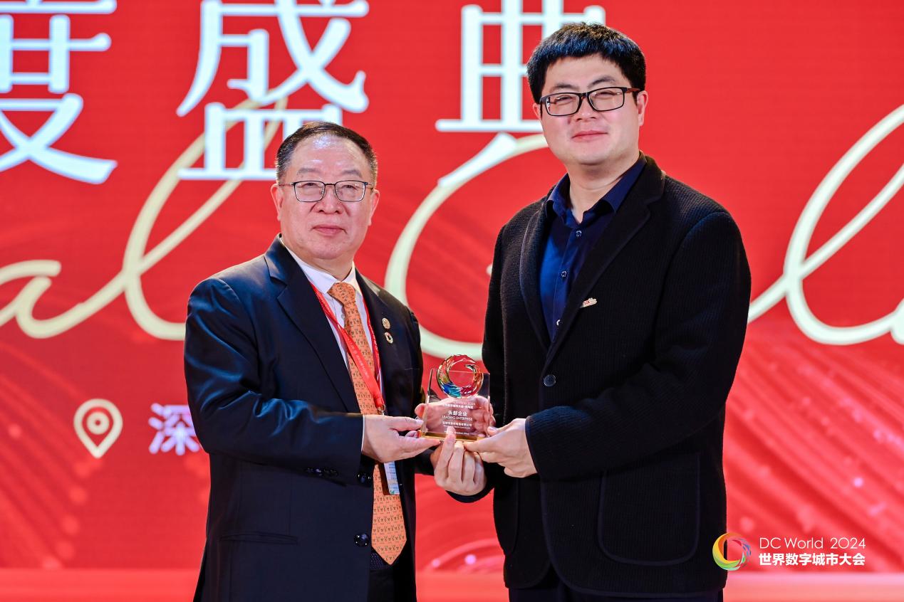 本次会议的重磅环节当属年度颁奖典礼,飞诺门阵荣获“2024世界数字城市大会·凤鸣奖·头部企业”殊荣。该奖项是大会颁发给企业的最高荣誉,从技术创新、环境保护、企业影响力和市场占有率等多角度综合考量,表彰为推动城市数字化发展做出杰出贡献的头部企业。飞诺门阵长期聚焦智慧城市建设,早在2020年初就和深圳市智能交通行业协会、深圳市安全防范行业协会及平安国际智慧城市达成战略合作,整合资源推进飞诺智算体系及边缘解决方案的创新应用。在“2023年世界数字城市大会”上,沈寓实院士荣获“数字城市大会·凤鸣奖·世界数字城市建设贡献奖”,飞诺门阵荣获“数字城市大会·凤鸣奖·数字转型独角兽企业”奖,这不仅是对飞诺门阵在推动城市数字化转型征程的有力肯定,也是对公司携手各界伙伴加速推进城市数智化升级的重要褒奖。