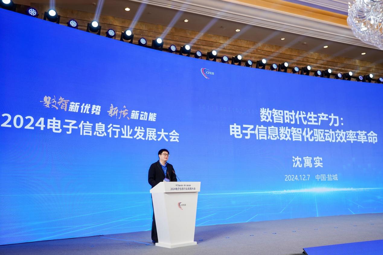 12月7日,“2024中国电子信息行业发展大会”在江苏盐城市重磅开幕,沈寓实董事长应邀出席并作主旨演讲。大会由中国电子信息行业联合会和盐城市人民政府主办,自2015年起已举办八届,是我国电子信息领域最为重要的专业盛会之一。本届大会以“数智新优势,新质新动能”为主题,沈寓实院士的演讲题目为“数智时代生产力:电子信息数智化驱动效率革命”,他指出:在数智时代,电子信息的数智化如同变革的引擎,能深度优化产业流程、精准对接供需、极大提升资源配置效率,是企业在新竞争格局下的关键致胜因素。出席大会的领导专家有:中国电子信息行业联合会顾问及原会长、原信息产业部部长王旭东,中国电子信息行业联合会常务副会长、工信部原总经济师周子学,盐城市委副书记、市长张明康,工业和信息化部电子信息司副司长史惠康,江苏省工业和信息化厅二级巡视员卢载贵,盐城市副市长董彩凤,中国电子信息产业发展研究院总工程师李宏伟,工信部电子第五研究所副总工程师赵国祥,盐城市人民政府秘书长徐宁建,盐都区委书记马正华等。