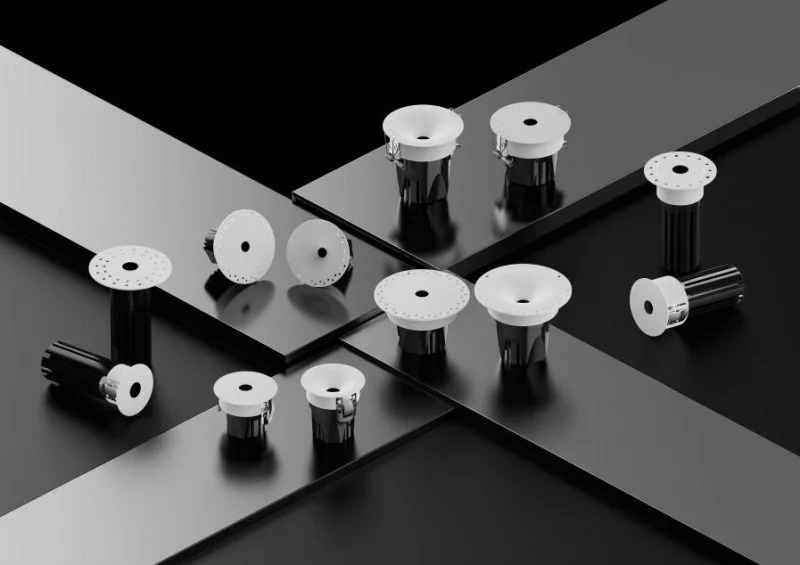 天自照明首次在国内推广小孔出光射灯,凭借其在照明技术上的独特优势,一举推出6种结构,20款家族式矩阵小孔出光产品,全系列独立开模制造,利用交叉出光技术,通过特定的结构设计、光学设计、LED光源设计,充分实现深防眩效果,提升光效,深化光斑质量。