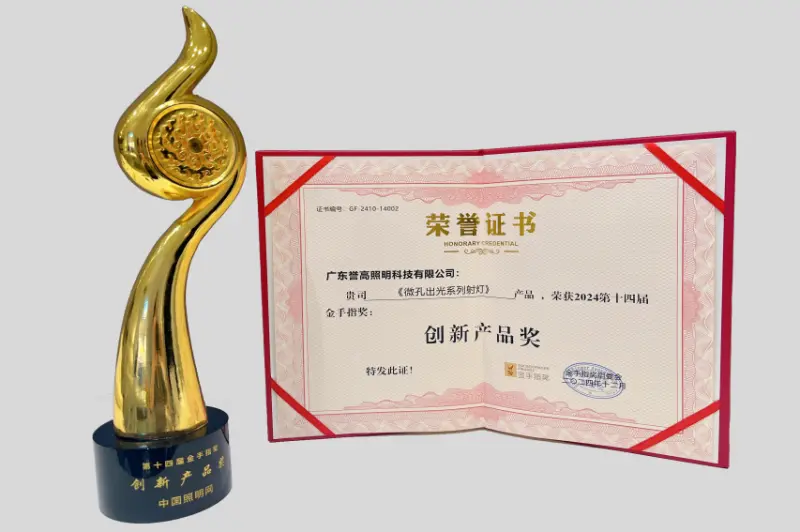 2024年12月,天自照明的小孔出光射灯终于不负众望,在由中国照明网主办的“第十四届金手指奖”评选活动中荣获“产品创新奖”,从众多候选品牌中脱颖而出,赢得了评委会的高度评价。