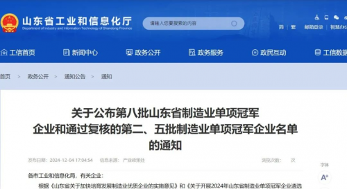 山东省制造业单项冠军企业是指长期专注于制造业某些特定细分产品市场、生产技术或工艺国际领先、单项产品市场占有率位居全省第一位且全国前五位的企业。