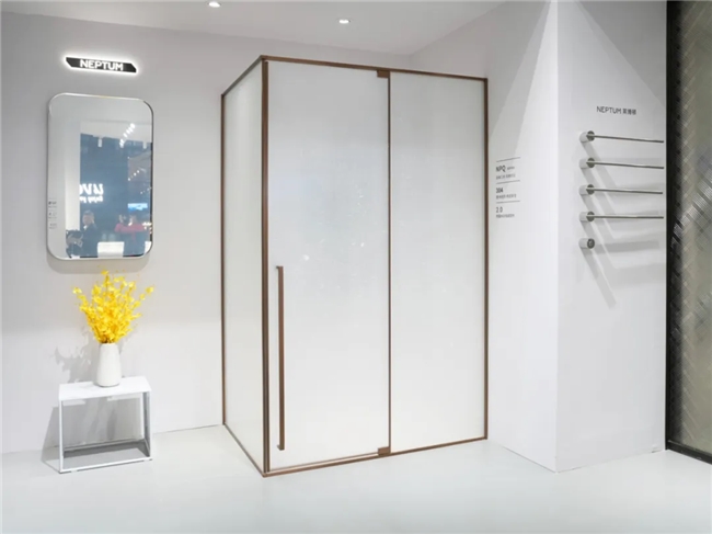 展馆以自然有序的设计理念,将场景秩序与产品矩阵有机串联,延展空间张力,简约与优雅的气息尽在其中。其中,产品涵盖淋浴房、全景门、壁龛、电热毛巾架、地漏、浴室镜等家居品类。