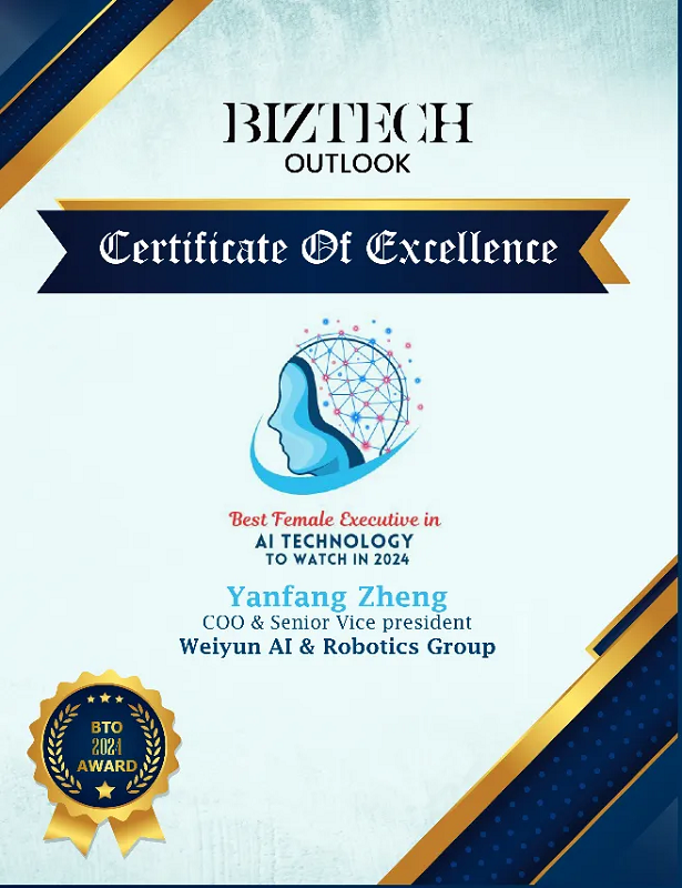 今年对于郑燕芳而言,亦是收获满满的一年,先后获得了诸多国内外的个人奖项,尤其是今年被被海外权威媒体《Biz Tech Outlook》评选为"2024年最值得关注的人工智能技术领域女性高管"。荣誉的获得,在她看来,既是鞭策更是鼓励——唯有执着与热爱,方得始终。
