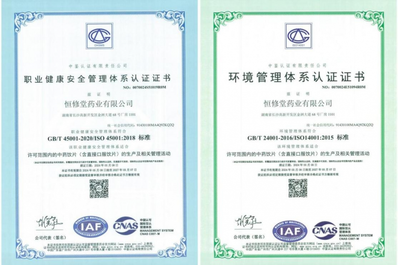 药品,作为与人民生命健康息息相关的特殊商品,其质量直接关系到消费者的生命安全。在药品安全和产品质量方面,恒修堂始终坚定“质量是企业的生命”,严格按照药品生产质量管理规范(GMP)标准执行,并将质量管理思想同频到企业各层次、各部门、各个环节,建立质量管理思维和行为习惯,近三年多次通过省市药监部门的GMP检查。2024年,恒修堂还通过了职业健康安全管理体系和环境管理体系2项ISO体系认证。