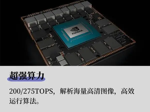全景全域AI视觉解决方案拥有高达200/275TOPS的AI算力,可瞬间解析捕捉相机生成的海量高清图像,实时运行复杂的深度学习算法,提升设备运行效率。