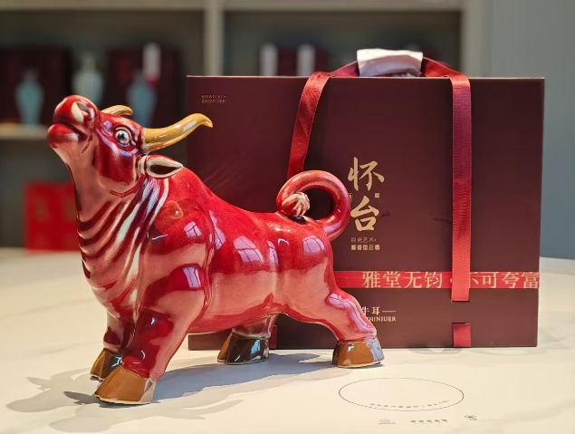 “执牛耳”由央美大师倾情设计,造型独特又兼具古朴典雅之美感,寓意展牛气冲天之势,与商务宴请的正式、高端氛围相契合。执牛耳在古代有“在某方面居领导地位”之意,在商务场合中饮用此酒,也有预祝生意场上取得领先地位、达成合作共赢的美好寓意,能够为商务洽谈增添一份文化内涵和独特的氛围。“执牛耳”系列采用红色釉,红色代表吉祥、繁荣。红色在钧瓷的众多釉色中极为难得和独特,且呈现出绚丽多彩的窑变效果。钧瓷红色釉的作品常被视为吉祥之物,寓意着生活红红火火、富贵昌盛。“执牛耳”系列酱香突出,优雅细腻,酒体丰富醇厚,果香味愉悦,后味悠长,口感让人爱不释手。