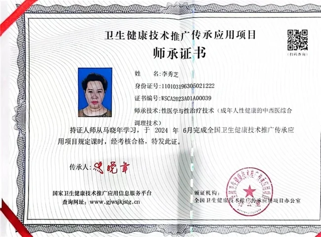 中健兴康(北京)健康科技有限公司作为中国健康标准化委员会生殖健康标准办公室的核心力量,始终站在行业发展的前线。公司主导制定了《非医疗生殖健康保健机构服务管理规范》,为行业提供了专业化和规范化的指导框架。值得一提的是,这项标准的起草工作由中健兴康创始人李瑶新(李秀芝)女士主导,她是我国性学领域权威专家马晓年的传承人,也是生殖健康领域的杰出推动者。