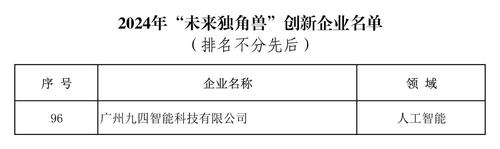 根据《关于开展2024年发现广州独角兽创新企业活动的通知》要求,由广州市科学技术局指导,广州市科技创新企业协会征集,广州产业发展研究院与广州市科技创新企业协会联合发布、中国建设银行广州分行协办的2024年发现广州独角兽创新企业活动,顺利完成了榜单遴选工作,广州九四智能科技有限公司(简称“九四智能”)凭借其卓越的技术创新能力和强劲的发展势头,成功入选2024“未来独角兽”创新企业榜单。