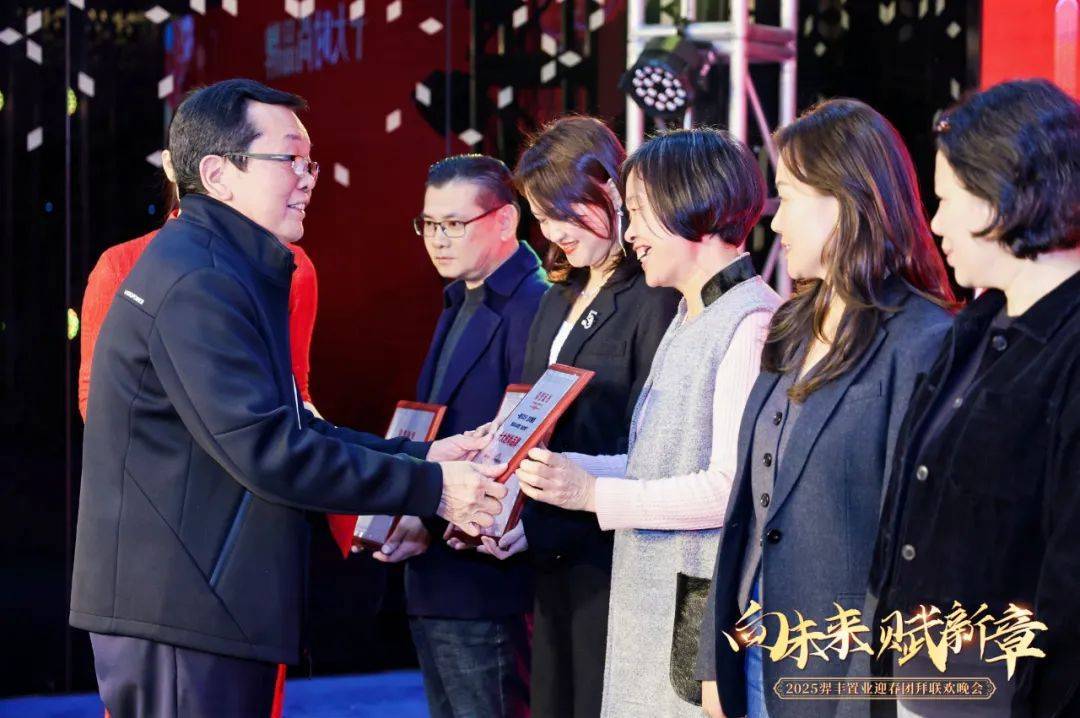 晚会现场还为获得2024年度“白云世界”十大时尚品牌、十大时尚商铺、十大时尚营销达人以及“我心中的白云皮具城”抖音短视频大赛的获奖单位及个人颁发奖牌和奖金。