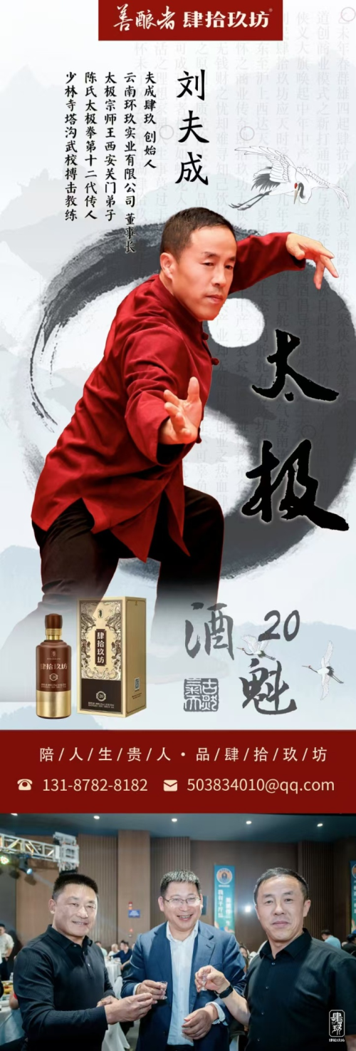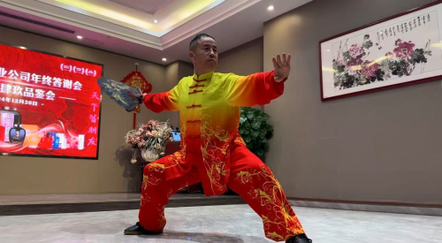 在这里,我们能够以酒为蝶、以心会友,畅享快意人生!我衷心期望借助这款佳酿,为大家呈献别具一格的体验,传递健康生活、高雅品味与深厚文化完美融合的理念。”衷心感谢这一路走来大家的支持,未来夫成肆玖仍与大家携手同行!接着,肆拾玖坊西南运营区区总杨静讲解肆拾玖坊发展史。肆拾玖坊秉持“酿新酒、卖陈酒、藏老酒”的经营理念,以酱香酒为核心业务,立足茅台镇核心产区,严格遵守12987传统古法酿酒工艺 ,引入先进管理,建立了现代化的“酿酒、储酒、灌装、物流”全产业链质控体系,同时肆拾玖坊以用户体验为核心,围绕“场景+文化”,在人、货、场三个维度进行重构,深度发掘用户需求,引导用户体验,实现品牌与用户的全新链接,成为中国白酒行业的新物种,为行业发展带来全新理念。既是江湖,怎么少得了武功,晚会上刘总带来太极扇表演。