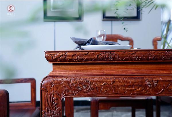 非遗红木家具国寿红木《玉如意圆台》采用大果紫檀为主要材质,色泽通透、纹理细腻,彰显出非凡的品质与格调。餐桌采用圆台设计,用餐空间充裕自在,轻松满足多人用餐需求。
