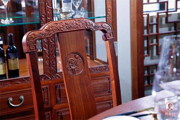 餐厅因起身坐下动作频繁,因此“靠背椅”是适用的款式,雕刻精致、古朴典雅,适当的弧度符合现代人体工程学。