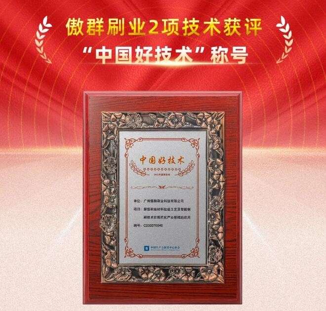 日前,中国生产力促进中心协会揭晓2024年度“中国好技术”名单,傲群刷业2项技术获“中国好技术”称号。我们始终将技术创新视为企业发展的核心驱动力,深耕智能制刷领域,致力为客户提供一站式高品质毛刷解决方案,是20家世界500强的一级供应商。