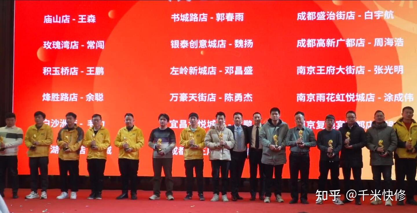 颁奖环节如约而至,相信榜样的力量是无穷大的。千米快修深知,取得的成就离不开每一位千米人的躬耕不辍和锐意进取。颁奖典礼上,千米快修对在过去一年中表现出色的店长、成长之星、联营区域合作典范以及优秀员工等颁发了荣誉奖项,感谢他们为公司发展做出的重要贡献。获奖的家人们依次上台领奖,并进行分享。