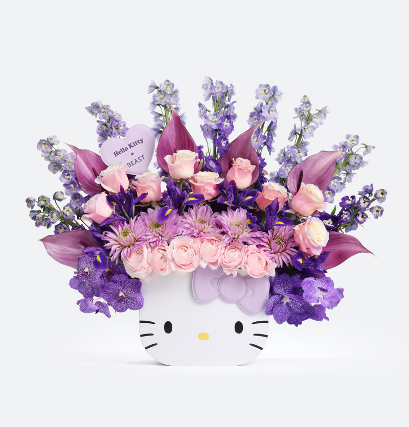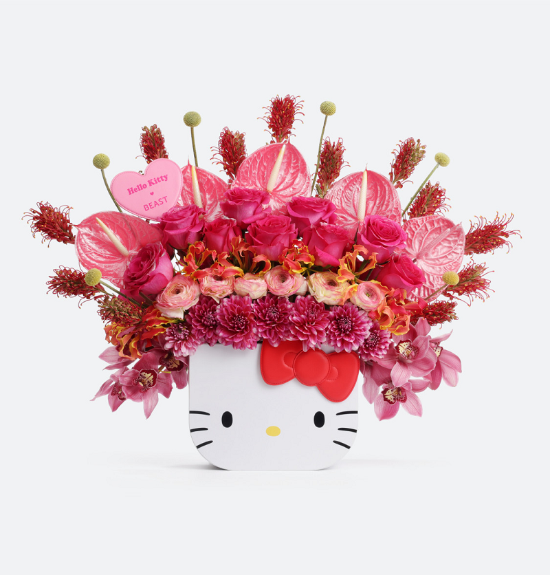 艺术感的花艺作品也是每年情人节最令人心动和期待的,今年野兽派特别推出了戴花冠的Hello Kitty,和如烟火绽放搬的绣球玫瑰蓬蓬花桶,相信没有人可以拒绝这一份可爱的浪漫。戴花冠的Hello Kitty 有粉色和紫色两款,铺满鲜花,让爱意自然生长,嘉兰给予告白的勇气,大丽花让爱情萌芽,鸢尾寄托深深思念,搭配Hello Kitty 造型花桶和爱心花牌,让爱的告白更加具象化。芍药玫瑰花桶,绚烂可爱,释放心动信号,代表爱情的难舍难分。BEAST野兽派 × Hello Kitty 2025情人节系列现已上市,可前往野兽派官网、小程序、线下门店选购。