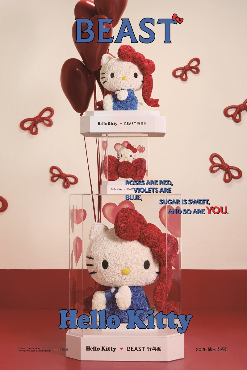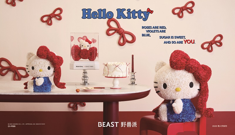 近日,高端艺术生活方式品牌野兽派携手Hello Kitty,发布了2025情人节限定系列。当蝴蝶结连通爱意信号,这个情人节就被Hello Kitty狠狠宠爱吧!此次系列包含创意鲜花、造型永生花等多款心动单品, 让人无法抗拒。