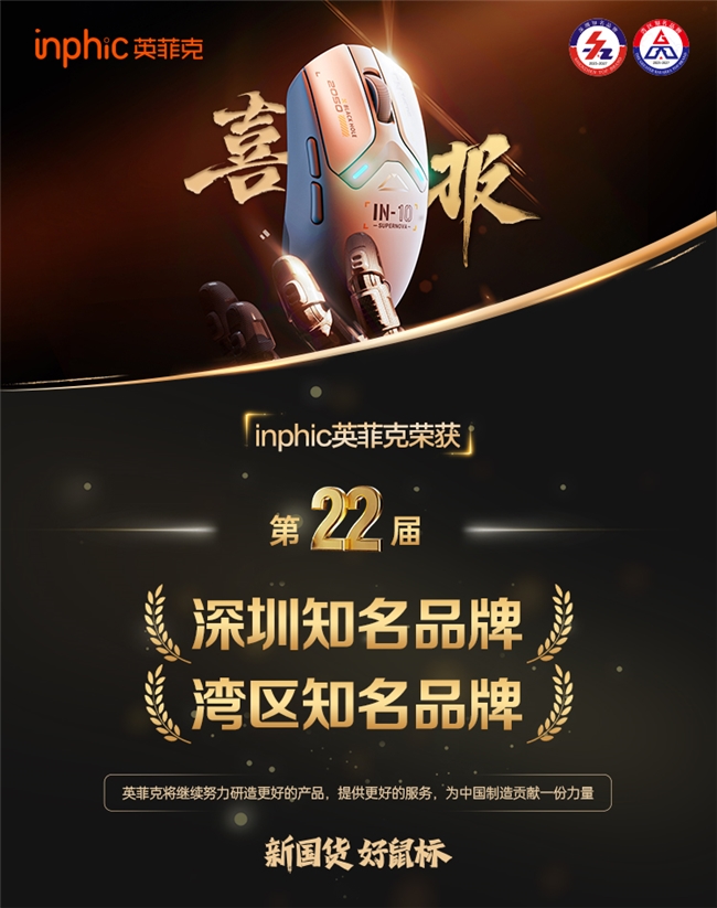 深圳市英菲克电子有限公司凭借优越的产品品质与强大的市场影响力,成功荣获第二十二届深圳(湾区)知名品牌。这一荣誉不仅是对英菲克过往努力的高度认可,更是其在国货外设领域持续深耕、不断创新的有力见证。