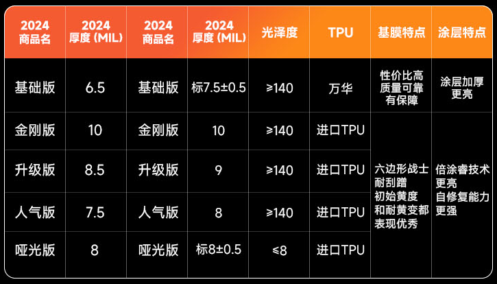 膜小二车衣各版本厚度全面升级,超越行业标准厚度。更厚的车衣意味着更强的防护能力,基膜增厚带来的不仅是物理层面的防护提升,像坚固的堡垒一样,日夜守护爱车,抵御一路风雨。